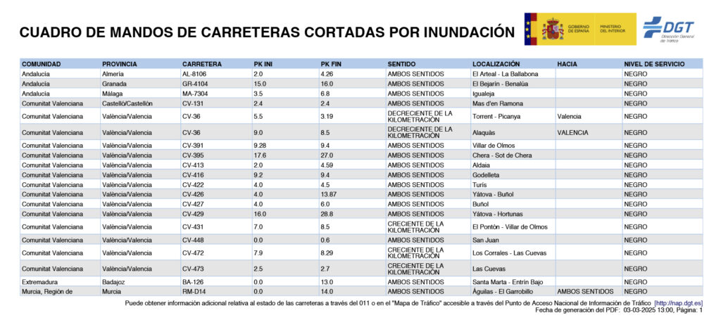 Carreteres talladess actualitzades a las 13,15 hores de hui: