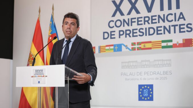 El president de la Generalitat, Carlos Mazón, ha lamentat que la Conferència de Presidents concloga de nou sense acords i sense el suport que necessiten els valencians per a la reconstrucció econòmica i social del nostre territori després de les inundacions del passat mes d’octubre.