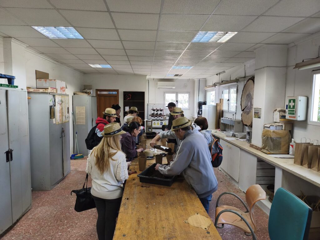 Com a part de la jornada, els pacients han participat en un taller pràctic de plantació de llavors de diverses espècies mediterrànies i agrícoles, entre elles Chamaerops humilis (margalló), Cucumis melo (meló), Fraxinus angustifolia (freixe de fulla estreta) i Colutea hispanica (espantallops). Esta activitat els ha permés conéixer el procés de sembra i les cures necessàries per al creixement de les plantes, implicant-se directament en una experiència vinculada a la cura de l’entorn natural.