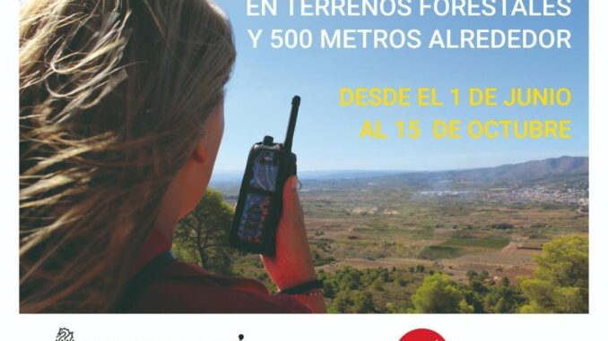 La Conselleria de Medi Ambient, Infraestructures i Territori recorda que durant el període estival entren en vigor les mesures establides per a la prevenció d’incendis forestals, que prohibixen l’ús del foc en els terrenys forestals o amb una proximitat a estos menor a 500 metres.