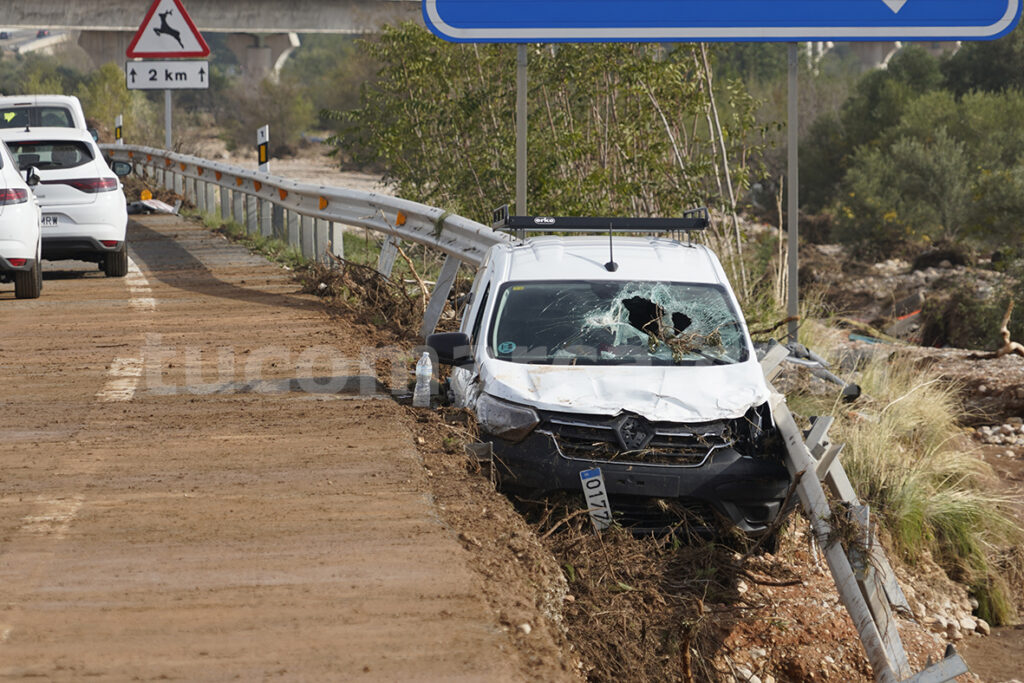 Tots dos trams es van convertir la tarde-nit del dimarts en una esgarrifosa pasterada de cotxes, fang, aigua i persones mortes, on centenars de vehicles es van veure sorpresos per l’aiguat que des del barranc del Gall va irrompre en l’Autovia i es va emportar per davant a vehicles i conductors i on encara hui es podien veure troncs de grans dimensions i més de mig metre de terra que va ser arrossegada per l’inimaginable corrent de la riuada que va convertir eixe tram de l’Autovia en un infern.