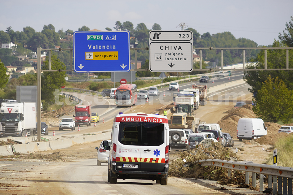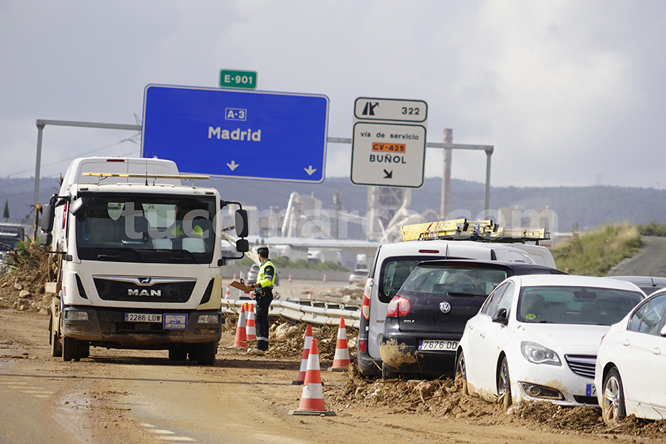 Aquest divendres s’ha restablit, encara que amb corts intermitents i molt lentament, la circulació en la via d’incorporació des de la població de Bunyol a l’Autovia A3 en sentit València; igual que el tram de l’Autovia entre els termes de Bunyol i Xiva (en la mateixa direcció) sota el viaducte de l’AVE, després de la retirada de la major part dels vehicles que van quedar atrapats la catastròfica i aterridora nit del dimarts en els voltants d’una zona que es va convertir en un parany mortal per a molts conductors.