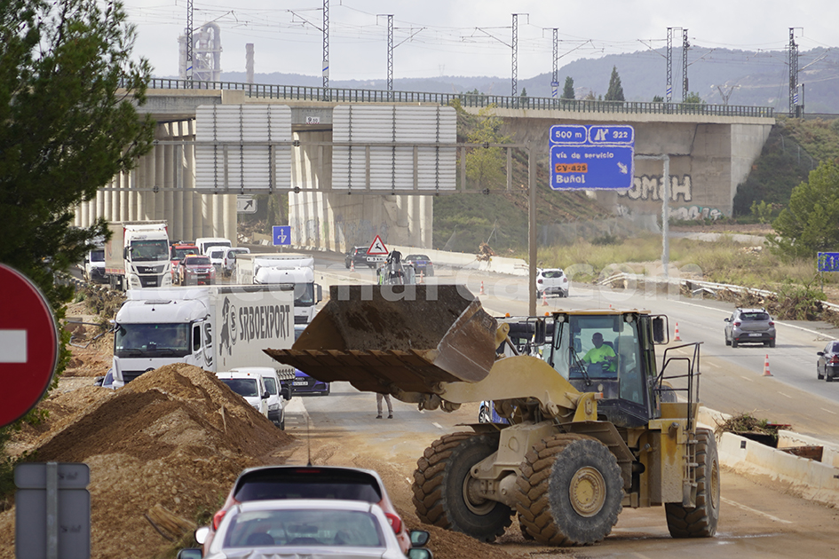 No obstant això, la circulació cap a València encara es realitzava aquest divendres a través de la via d’accés a Xiva des de Bunyol, atés que l’A3 seguia sense estar oberta al trànsit a partir del pont existent metres avance de l’accés en la citada direcció.