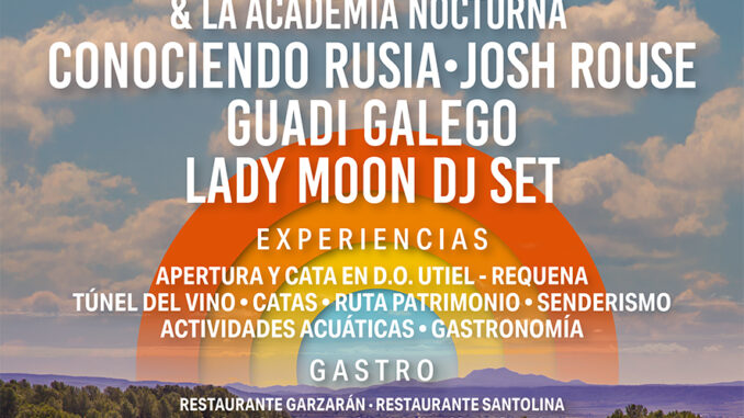 Tierra Bobal Fest presenta una programació que combina música en directe, patrimoni, vi i naturalesa. Amb concerts que es repartiran per diferents escenaris o cellers locals, el públic podrà gaudir en enclavaments especials d’artistes com Quique González, un referent del rock espanyol d’autor; Santiago Auserón, conegut per formar part d’un dels grups més destacats de la Moguda Madrilenya, Ràdio Futura; des de l’Argentina arribarà Coneixent Rússia, una de les bandes amb més projecció internacional de latinoamérica i Premi Grammy Llatí a la Millor Cançó Pop/Rock per “Cinc hores menys”. Completa el cartell l’estatunidenc Josh Rouse i des de Galícia una de les seues artistes més destacades, Guadi Galego, que amb un estil personal fusiona pop i folk tradicional. La dj Lady Moon estarà també en aquesta nova edició de Tierra Bobal Fest. Una proposta musical que mescla artistes de diferents territoris amb una marcada identitat pròpia.
