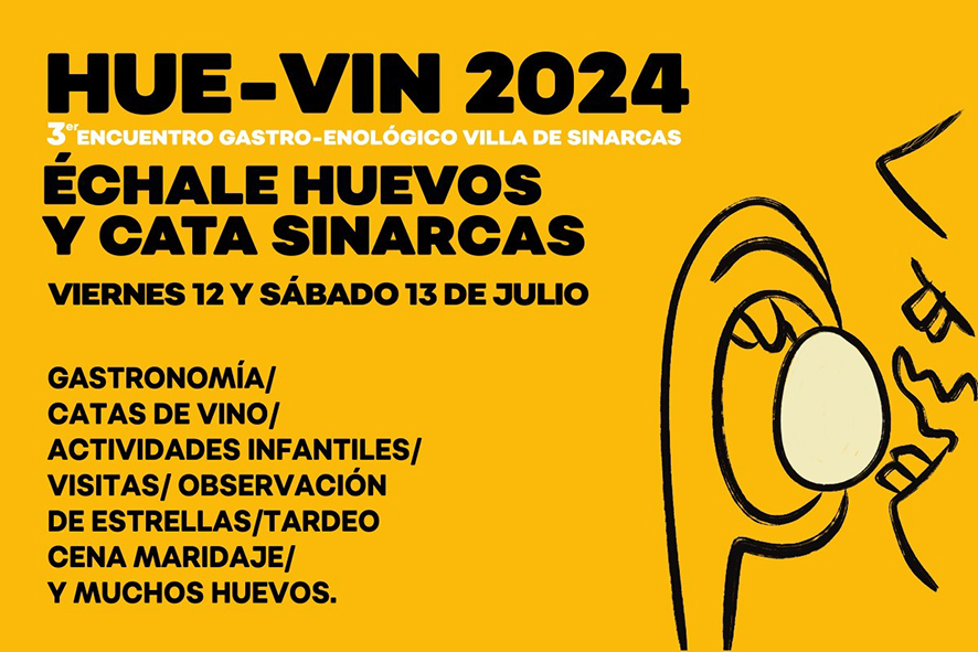 Hue-Vin és una iniciativa de l’Ajuntament de Sinarques, en col·laboració amb Tierra Bobal i amb el patrocini de València Turisme, per a posar en valor la importància de l’ou en la localitat, que s’ha convertit en el rebost d’aquest producte a nivell nacional. Grupo Huevos Guillén, QOVO, Huevos Monterde, Sinarques Avícola i Naturalsa, són les cinc signatures del sector que recolzen l’esdeveniment. Al costat d’ells, Cajamar i La Campesina Fertol acompanyen a Sinarques en un dels esdeveniments més divertits de l’estiu.