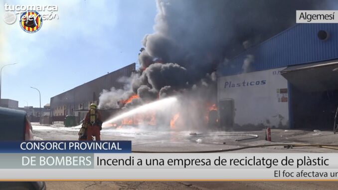 Vídeo: així ha estat la intervenció dels Bombers a un incendi industrial a una empresa de reciclatge de plàstic d’Alcàsser