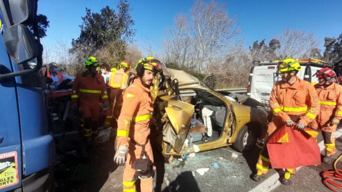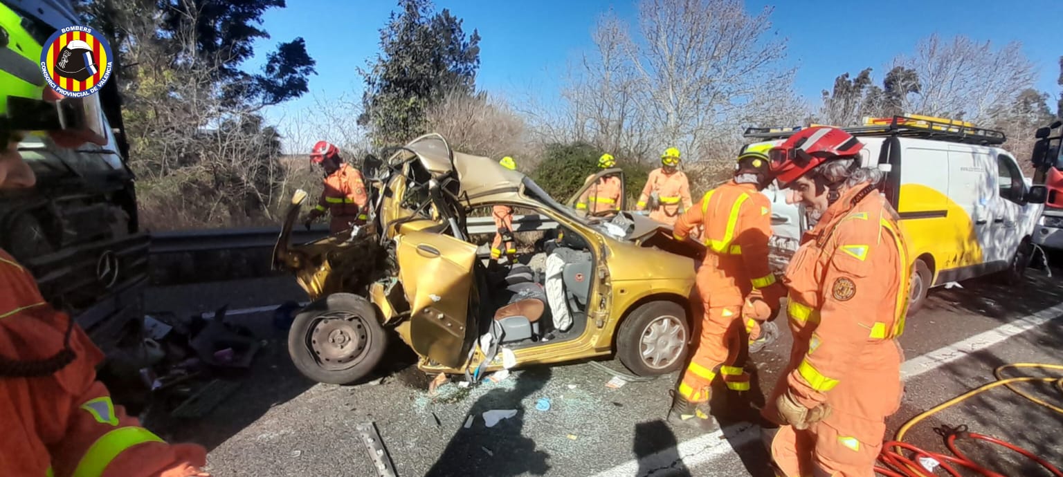 Els bombers han alliberat els dos ocupants i han sigut transferits als mitjans sanitaris per a ser traslladats a l’hospital.
