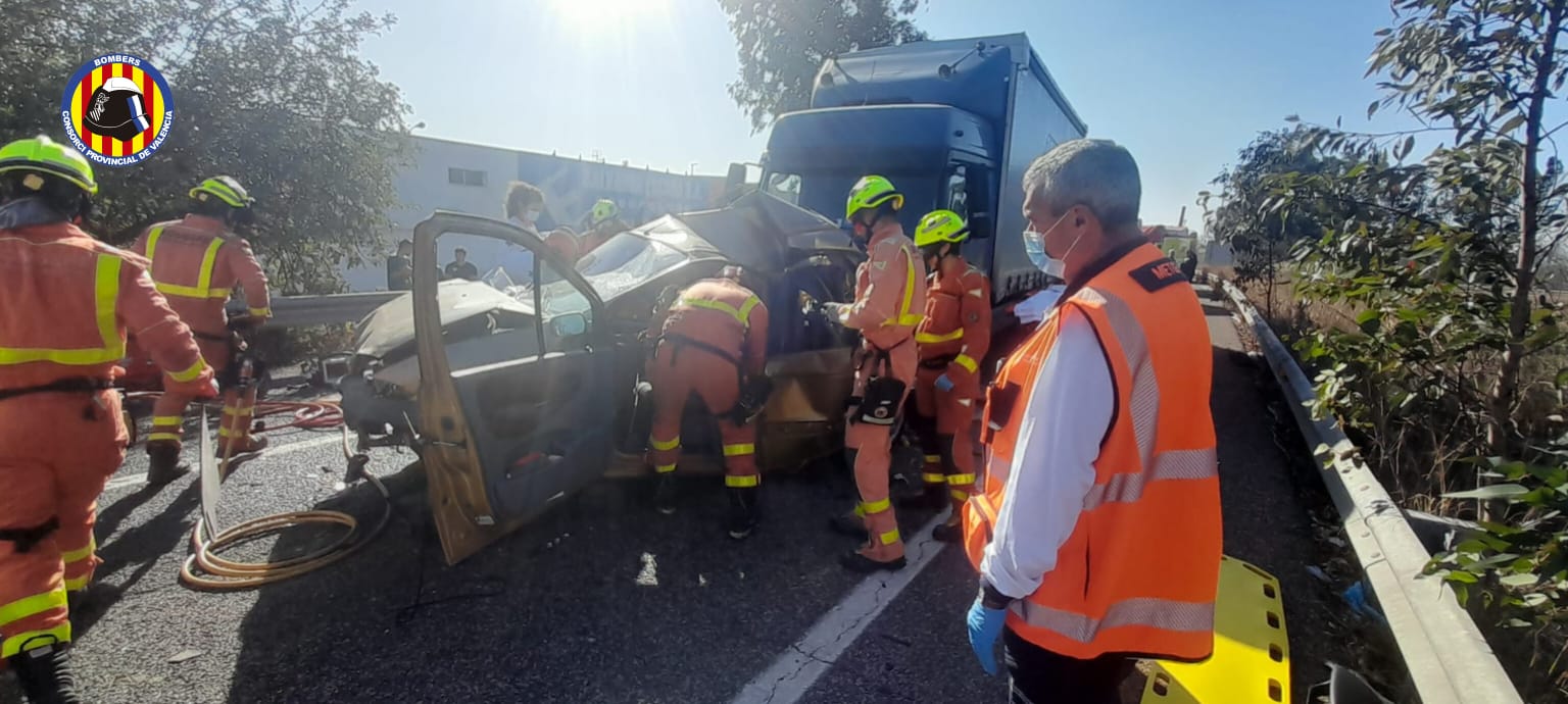 Al voltant de les 11,00 hores, fectius dels bombers d’Alzira i Cullera i el sergent d’Alzira han actuat en un accident en la CV-50 a Alzira, en el qual han hagut d’excarcerar a dues persones.