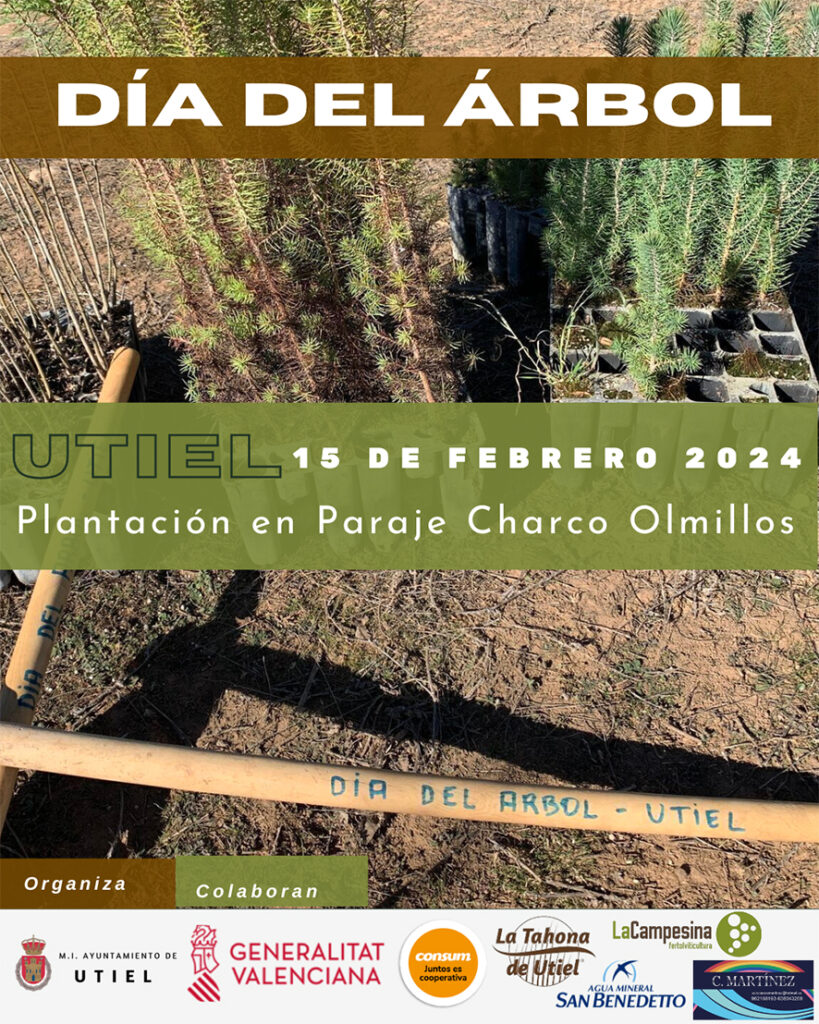 La jornada, organitzada per l’Ajuntament d’Utiel, comptarà amb la col·laboració de la Generalitat Valenciana en la donació dels plançons, així com d’altres empreses que facilitaran diferents recursos de manera altruista, com a productes d’alimentació per a l’esmorzar, protectors de planta, mitjà de transport per al desplaçament d’escolars etc.