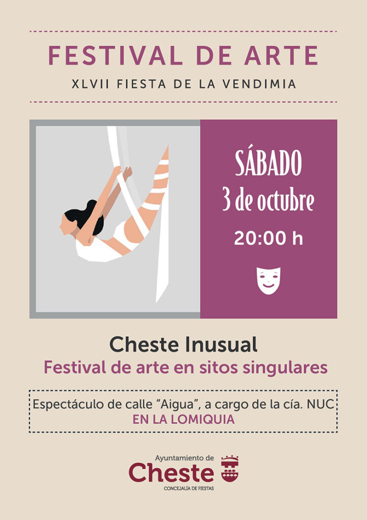 Entre les activitats, destaca el festival d’art a llocs singulars, “Xest Inusual”, amb tres obres de microteatre o de teatre breu que es realitzaran els dies 9, 10 i 23 d’octubre, a les entrades de cases antigues de la localitat. Cada actuació comptarà amb dos passis, a les 18 i a les 20 hores. A més, dins de el festival s’emmarquen els espectacles de carrer Aigua, que oferirà la companyia NUC el dissabte 3 d’octubre al Parc de la Lomiquia; i surats, de la companyia David Moreno & Cia., que tindrà lloc a la plaça Doctor Cajal, el diumenge 11 d’octubre a les 19 hores.