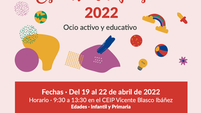 L’Escola de Pasqua es desenvoluparà del 19 al 22 d’abril en horari de 9.30 a 13.30 hores i tindrà lloc en el CEIP Vicente Blasco Ibáñez. El preu de l’activitat és de 30 euros, que hauran d’abonar-se a través de la seu electrònica, en l’apartat d’Autoliquidacions.