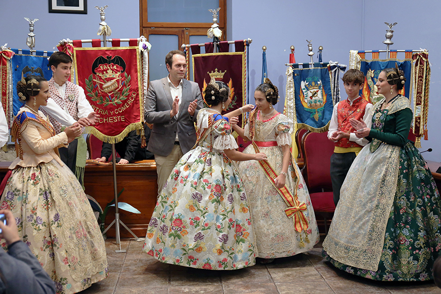 Després de la seua paraules van ser anomenades les falleres sortints, Candela Llorens Beleña i Marina Lleonart Ocaña, per a passar el testimoni a les seues companyes, Reme Peix Manzano i Marta Huercio Marín, els qui representaran a la Junta Local Fallera de Xest en 2024 com a Fallera Major i Fallera Major Infantil, respectivament. “Les falleres sortints han afrontat el període més llarg en tota la història de les falles de la nostra població com a màximes representants de la seua comissió i de la Junta Local, heu enfrontat amb valentia i disciplina els temps tan convulsos que ens va tocar viure i el vostre compromís amb la festa passarà a la posteritat. A les falleres entrants els vull recordar que ser representant de la Junta Local significa estrényer els llaços d’harmonia i cordialitat entre les dues comissions que la formem i impulsar el millor enteniment a favor del major èxit i prestigi de la nostra festa fallera”, apuntava Vallet.