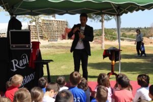 A lo largo de la mañana se sucedieron talleres de reciclaje organizados por la asociación Eco-embes, pinta-caras, dibujos para pintar, la actuación del mago Raúl Quintana, actividades programadas por la asociación La Canera y fundación Jadoul “mes que gossos” y la exhibición de perritos en adopción, además de mercadillos destinados a recaudar fondos para ambas asociaciones y los más de 100 perros en acogida en sus sedes en Cheste.