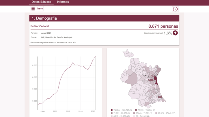 Con una inversión de cerca de 400 euros anuales por parte de Consistorio este portal ofrece a la población información socioeconómica actualizada a través de gráficos y mapas interactivos que facilitan su comprensión. “Es una buena herramienta en pro de la transparencia donde la ciudadanía y otros agentes pueden consultar datos acerca de demografía, mercado de trabajo, renta y actividad económica, presupuestos municipales liquidados y elecciones municipales de manera fácil, en un entorno intuitivo y sencillo. Además, sirve a la administración para recopilar la información necesaria para definir planes y proyectos desde el conocimiento y a partir de datos contrastados”, ha añadido Guijarro.