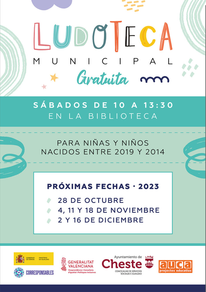 Desde las Concejalías de Educación, Servicios Sociales e Igualdad se ha puesto en marcha un nuevo servicio de ludoteca gratuito destinado a niños y niñas de entre 4 y 9 años (nacidos entre 2019 y 2014) que funcionará los sábados en horario de 10 a 13:30, en la biblioteca municipal.