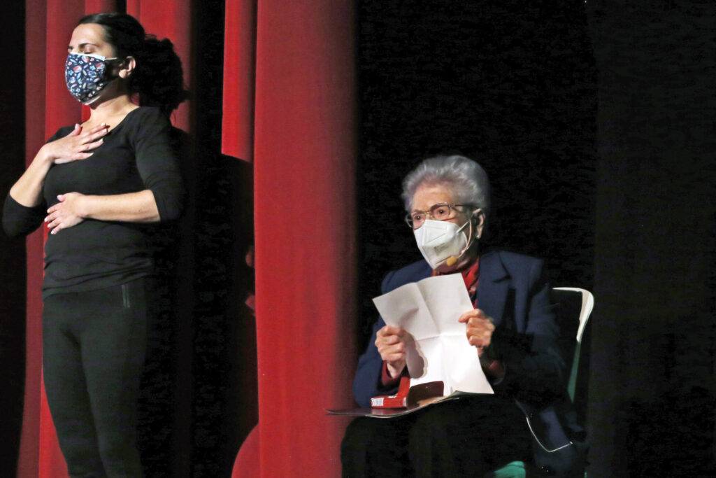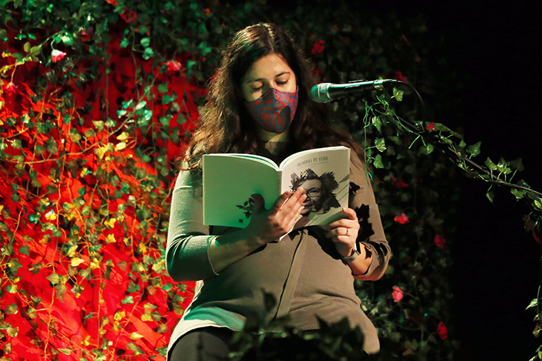 En el escenario se intercalaron fragmentos de una entrevista a Maruja con la lectura de poemas, por parte de los nietos y nietas de la homenajeada, y la actuación en directo de Nacho Rodrigo, uno de los hijos de Maruja, que cantó canciones como Volver o Contigo en la distancia. Además, participaron con sus intervenciones otro de sus hijos, Javier Rodrigo; una de sus profesoras, Margarita Martínez; la ilustradora del libro, Eva Cortés; la concejala de Cultura, Mª Ángeles Llorente, y la propia Maruja, que se mostró emocionada ante las palabras que le dedicaron.