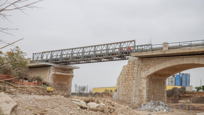 Ayer, lunes 25 de noviembre, Cheste recibió la visita de la Ministra de de Ciencia, Innovación y Universidades, Diana Morant, y de la delegada del Gobierno en Valencia, Pilar Bernabé, con motivo de la próxima apertura al tráfico del puente provisional instalado por la UME en la CV-50, en el que se están finalizando las obras de las rampas de acceso, por parte de la Generalitat.