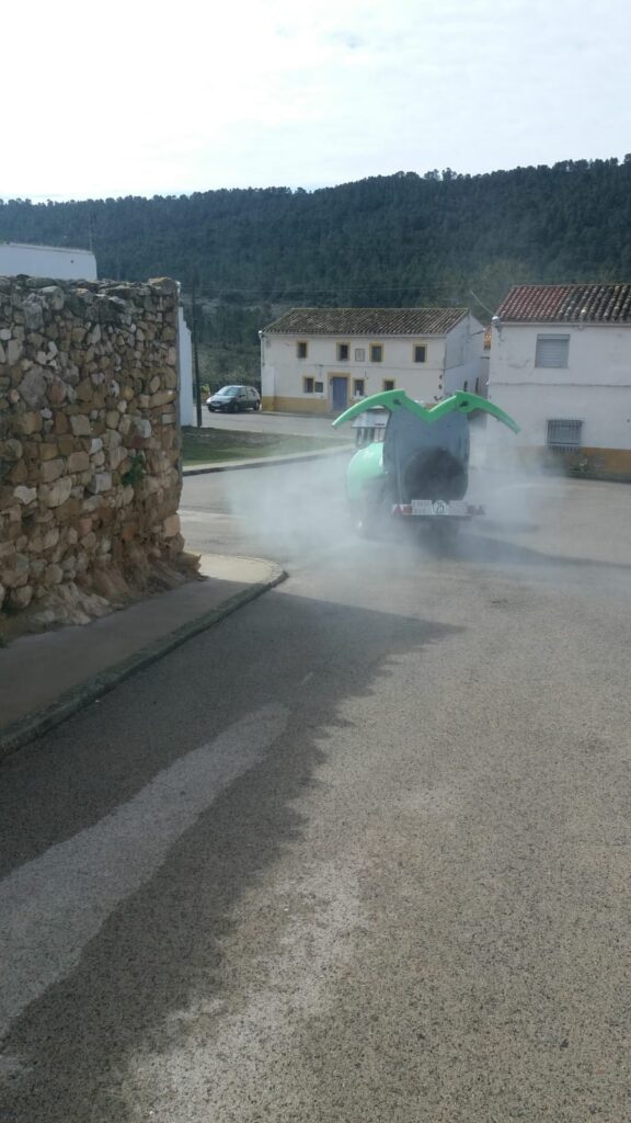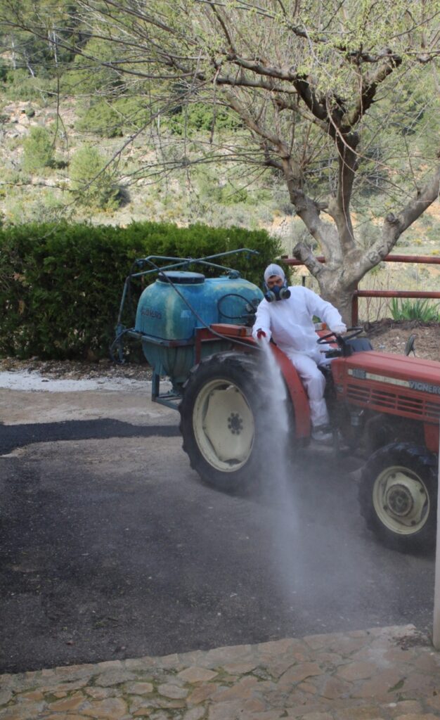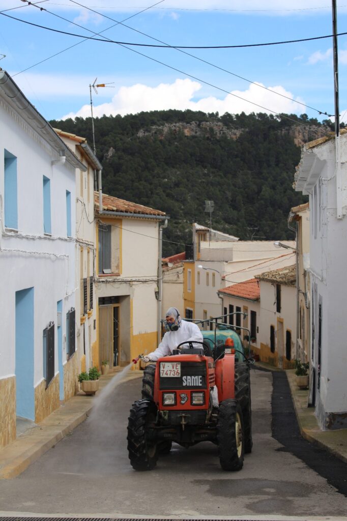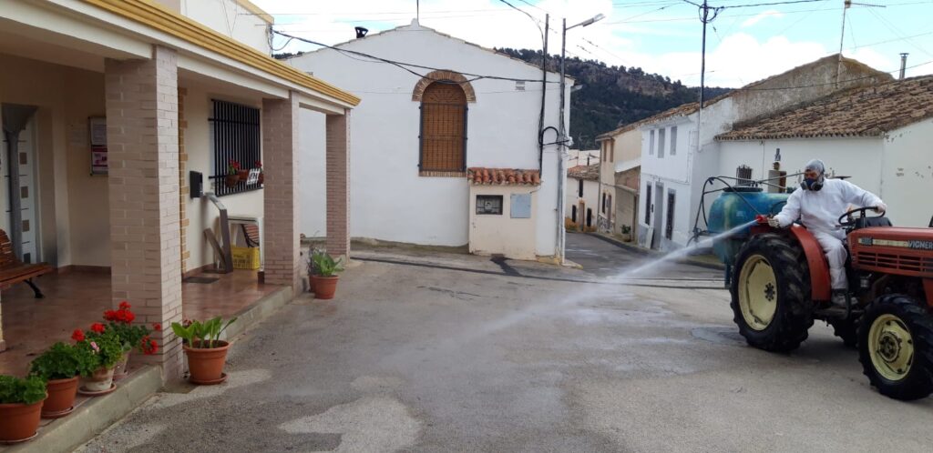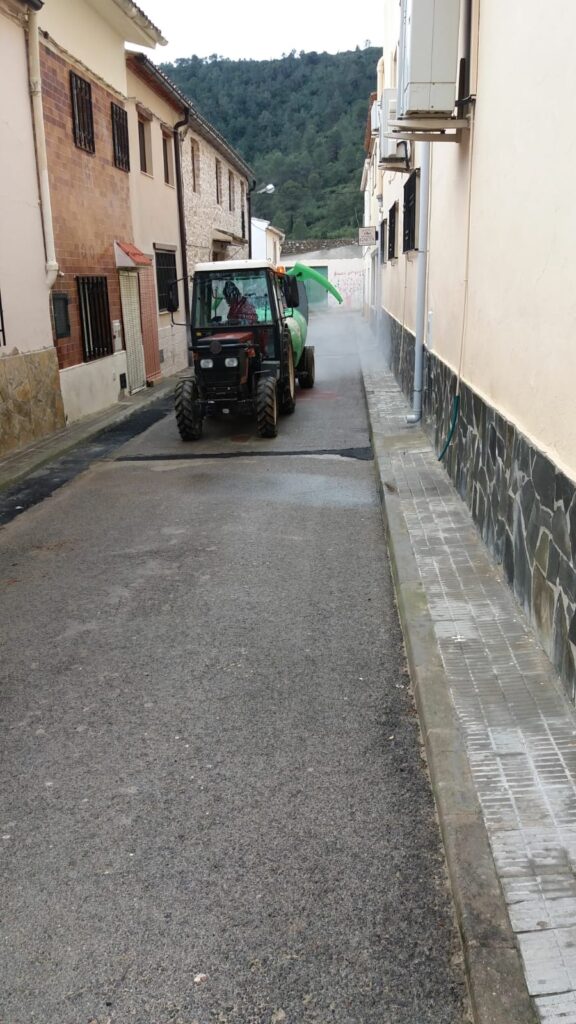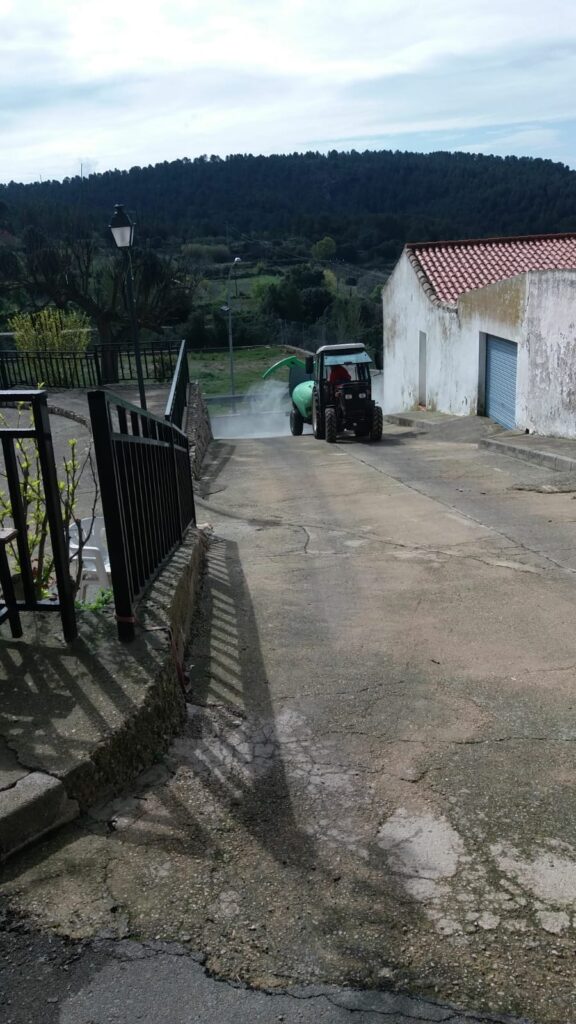 El Ayuntamiento de Cortes de Pallás continúa con la desinfección del resto de aldeas que ya inició semana atrás, prácticamente en cuanto se decretó el estado de alarma.