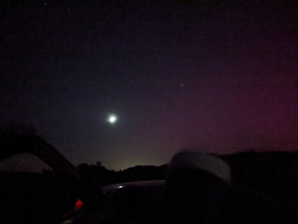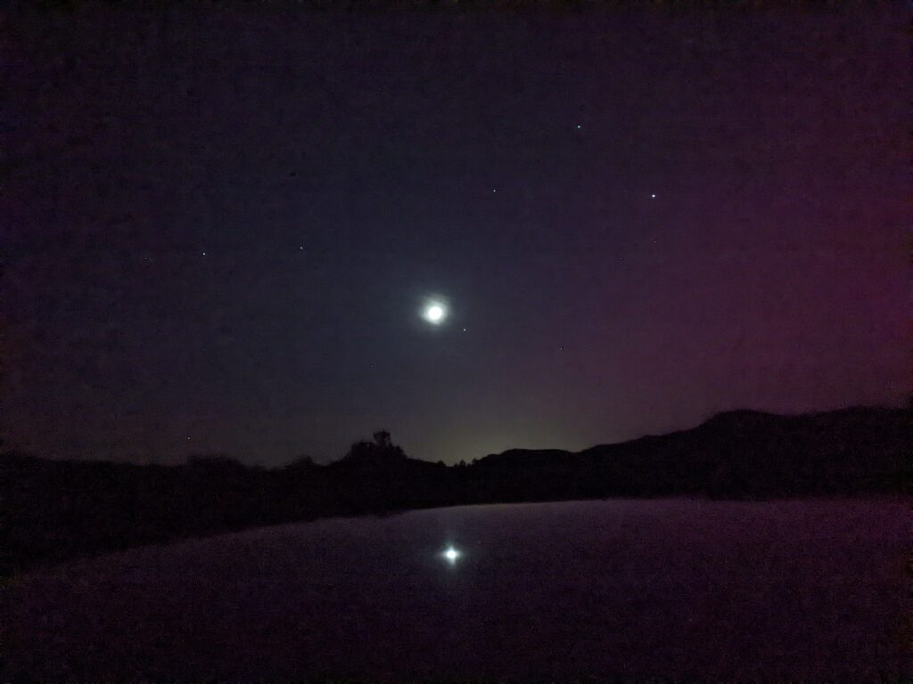 Concretamente, Roberto Palmer ha hecho público que el pasado «jueves tenía previsto una observación nocturna con un telescopio Maksutov de 60×127 que tuve que posponerla al viernes a causa de la aparición de nubes. El viernes me desplacé al cruce de caminos de Pardenillas y del barranco de la Peñuela (39°23’46.5″N 0°52’44.0″W) y comencé a preparar el telescopio para observar las galaxias, nebulosas y cúmulos globulares mas brillantes entre las 22 y las 24 horas. Como la humedad que traía el viento de Levante disminuyó la oscuridad de la atmósfera, y consiguientemente el contraste necesario para observar estos objetos con un brillo superficial muy débil, me entretuve haciendo fotos del entorno con el móvil».