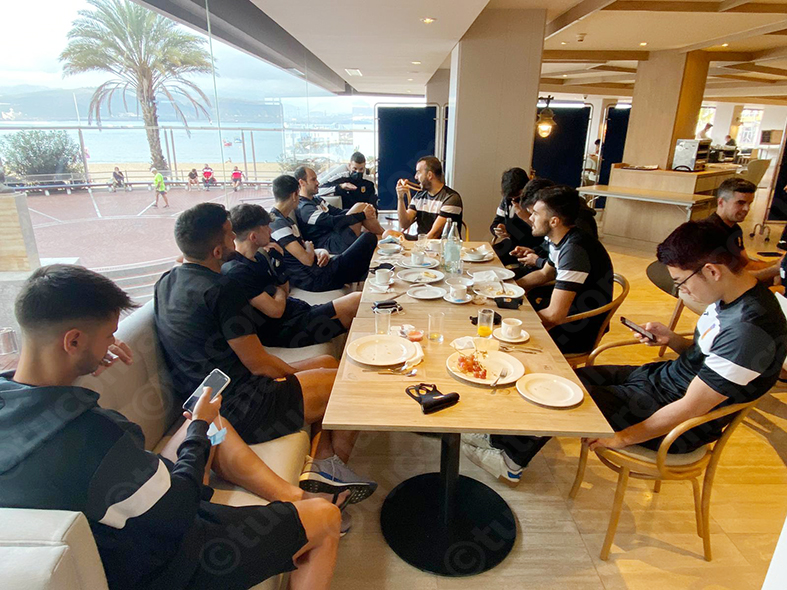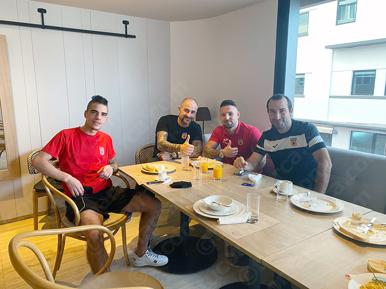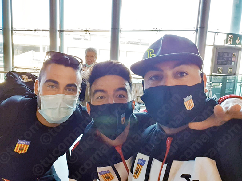 La expedición buñolense salió del aeropuerto de Manises ayer martes a las 11,30 horas y llegó a las 14,00 horas sin problemas hasta el hotel de concentración, NH Imperial Playa y donde se suelen alejar equipos de Segunda para cumplir todos los protocolos de la Federación de Fútbol. Un hotel que está ubicado en primera línea de playa, separado 45 minutos del campo donde tendrán que disputar su partido y donde los blancos se van a alojar hasta este jueves, momento en el que volverán a casa en vuelo directo a Madrid.