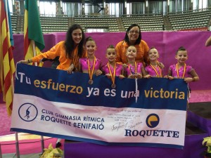 El equipo formado por las gimnastas Marta, Nerea, Lucia, Carla y Elena “demostraron su enorme evolución desde el principio de temporada culminando su trayectoria con la medalla de plata, dejando constancia una vez mas que el club Roquette se mantiene en lo más alto en todas sus categorías y niveles”, señalaron fuentes del club deportivo tras recibir el título.