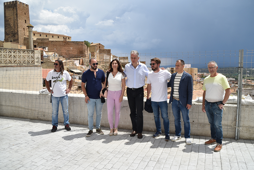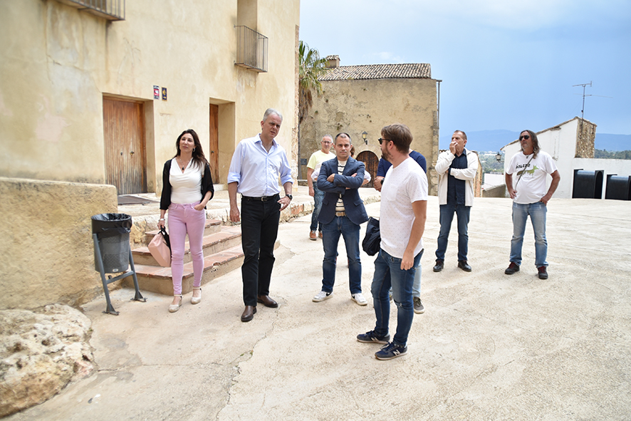 Durante la visita ha paseado junto los candidatos, Chimo Masmano Ruiz y Mati Mas, y otros miembros de la candidatura por el castillo de Buñol y el barrio antiguo, haciendo una parada especial en las obras de reconstrucción que se han llevado a cabo tras el derrumbamiento de la calle Moratín.