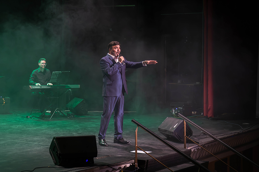 Tras la merienda, los y las homenajeados se trasladaron al Teatro Liceo para asistir al espectáculo Nino Bravo In Memoriam, un tributo oficial al cantante valenciano en el que se interpretaron conocidas canciones como Cartas Amarillas, Un beso y una flor, América o Noelia y que contó con tres proyecciones biográficas que repasaron la trayectoria personal y profesional del emblemático artista de la década de los 70.