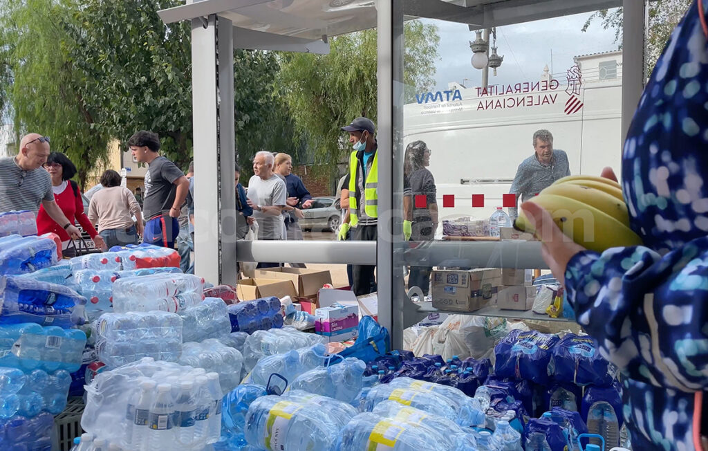 «Por favor, que no nos traigan más alimentos ni más mantas, que estamos abastecidos», rogaba la alcaldesa de Chiva mientras agradecía a todos las donaciones ya el mismo jueves, cuando eran toneladas de comestibles y de agua las que se recibían desde pueblos vecinos de particulares y Ayuntamientos, como el de Buñol que fletó varios camiones.