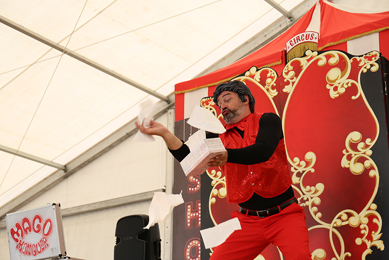 El sábado por la mañana, la carpa del parque de La Lomiquia acogió el espectáculo familiar “Show Moscón”, protagonizado por un peculiar mosquito que se ganó al público con los divertidos números de su circo, a cargo de alocados personajes.
