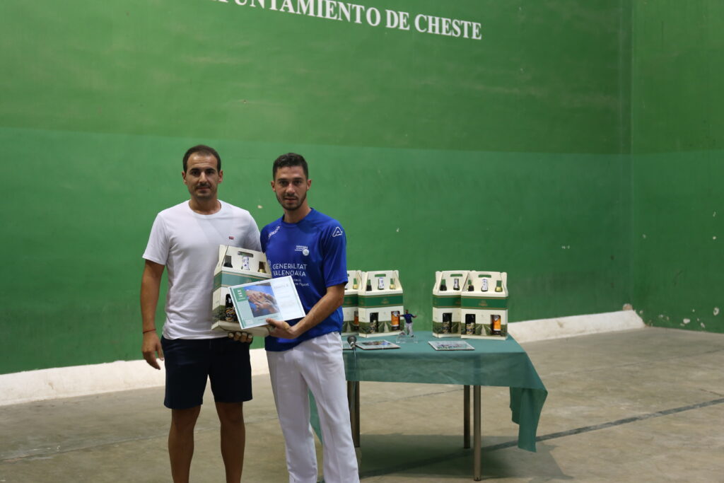 “En Cheste hay mucha afición a la pelota valenciana, disponemos del frontón en el centro del pueblo y celebramos dos partidas muy importantes en nuestras fiestas patronales. Desde el Ayuntamiento tenemos interés en promover el deporte y las tradiciones valencianas, así que respondiendo también a la demanda que nos trasladaron algunas personas, decidimos programar una partida de primera durante las Fiestas de Julio”, explicaba el concejal. “Le agradezco mucho a los jugadores que hayan venido, ya que hemos organizado la partida con muy poco tiempo, ellos lo han llevando todo adelante y nosotros hemos acondicionado un poco el local, hemos puesto un ventilador en las gradas y les hemos preparado un pequeño detalle”.