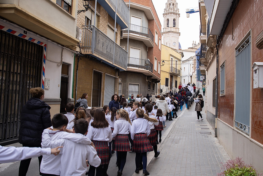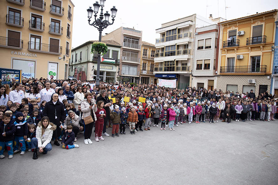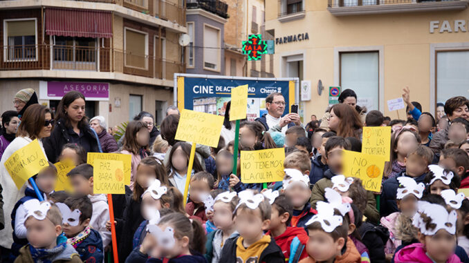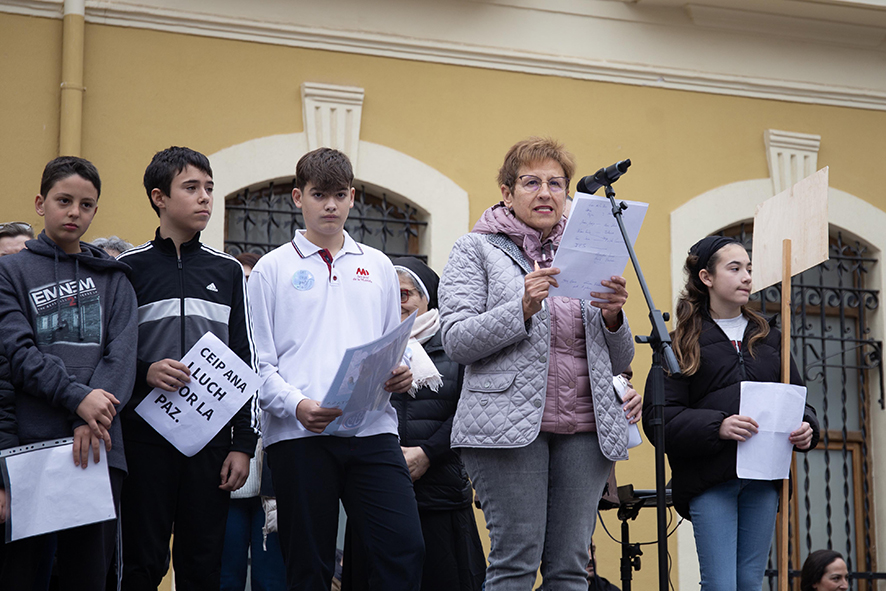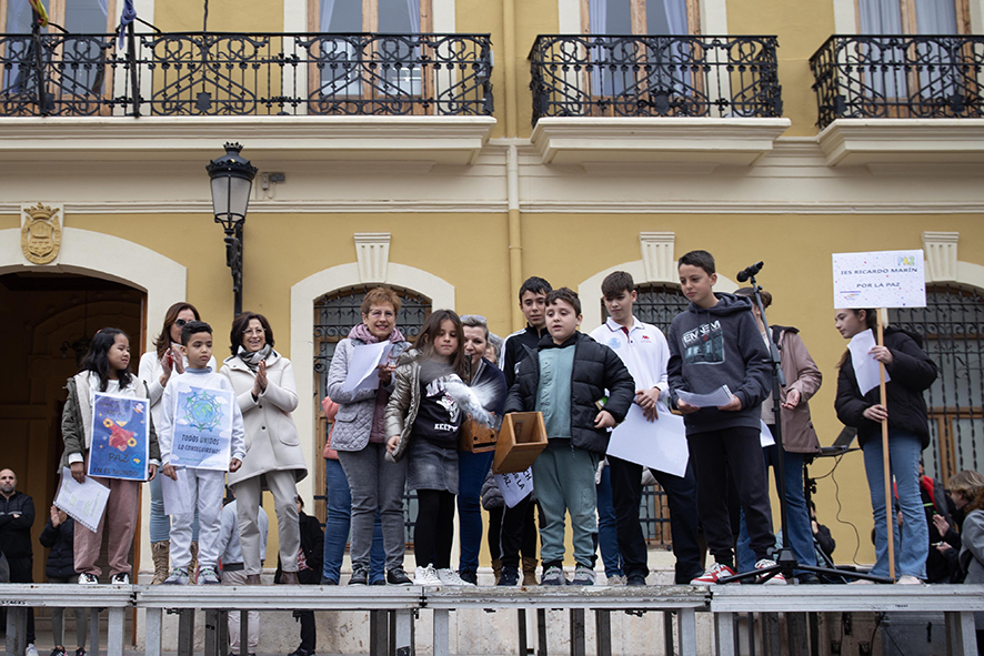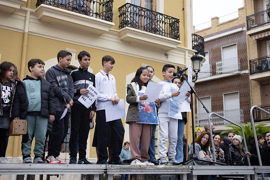 Esta mañana el alumnado y profesorado de los centros educativos de Cheste se ha reunido en la plaza Doctor Cajal en un emotivo acto por La Paz organizado junto con el Ayuntamiento.