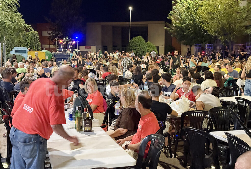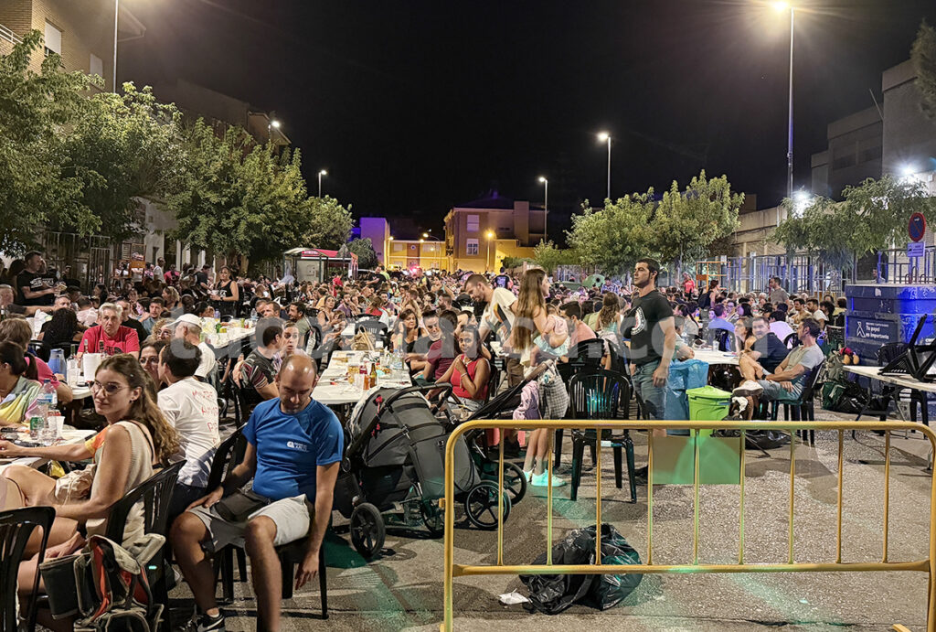 La avenida se convirtió en un gran espacio de convivencia y sabor, donde los calderos de gazpacho fueron los protagonistas. Vecinos y vecinas compartieron este guiso típico en un ambiente marcado por la hermandad, la alegría y el espíritu festivo. El Ayuntamiento dispuso tableros y sillas para todos los asistentes, mientras una discomóvil ponía música a la velada y animaba la degustación.
