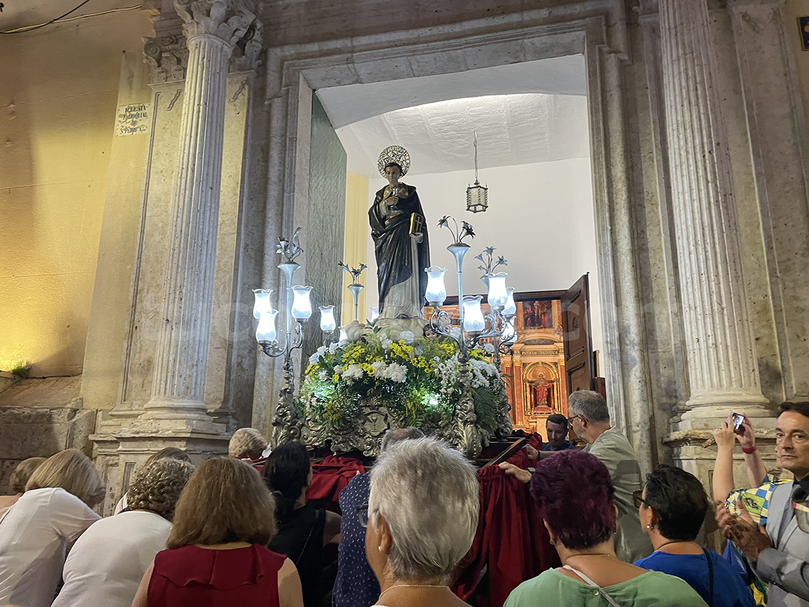 El traslado del patrón de Buñol, San Luis Bertrán, desde su ermita ubicada en el paseo del mismo nombre a la parroquia de San Pedro Apóstol, ha marcado un año más el punto de partida de la Feria y Fiestas de Buñol de este 2023.