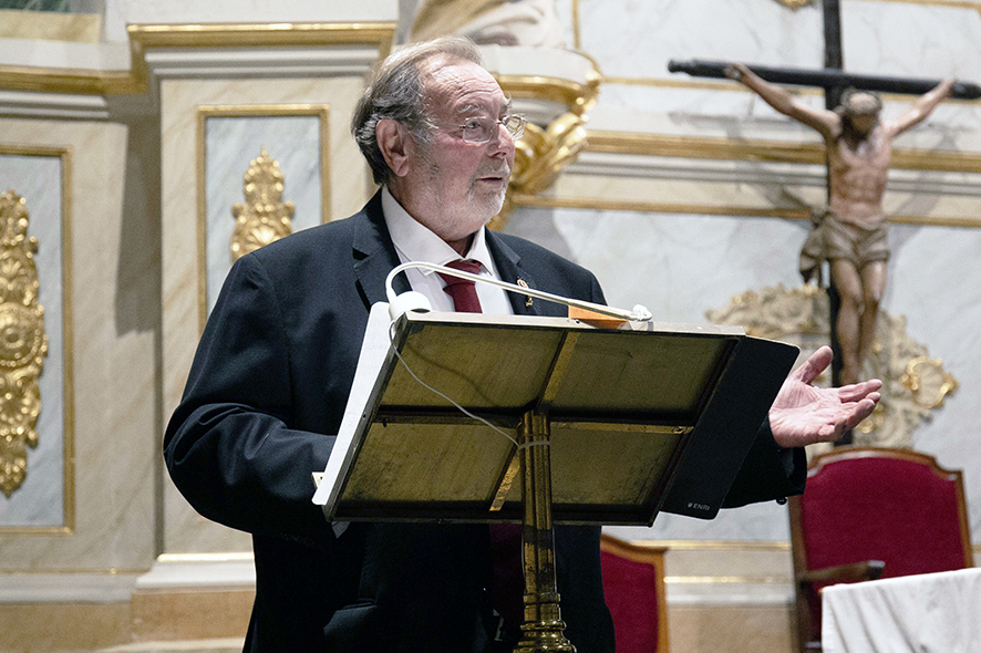 Tras los discursos, Fernando Manzanera, miembro de la coral y amigo de Sánchez, presentó el concierto e introdujo cada una de las obras. “Con mi maestro estoy 63 años, hemos hecho de casi todo, tiene mi admiración, porque además de buen músico y compositor, es agricultor”, manifestaba Manzanera. “En la coral quedamos ya pocos pero somos muy valientes. Hoy vamos a interpretar tres piezas compuestas por él, Misa en Castellano, dedicada a Santa Cecilia, un Ave María preciosísmo y un Panis Angelicus”.