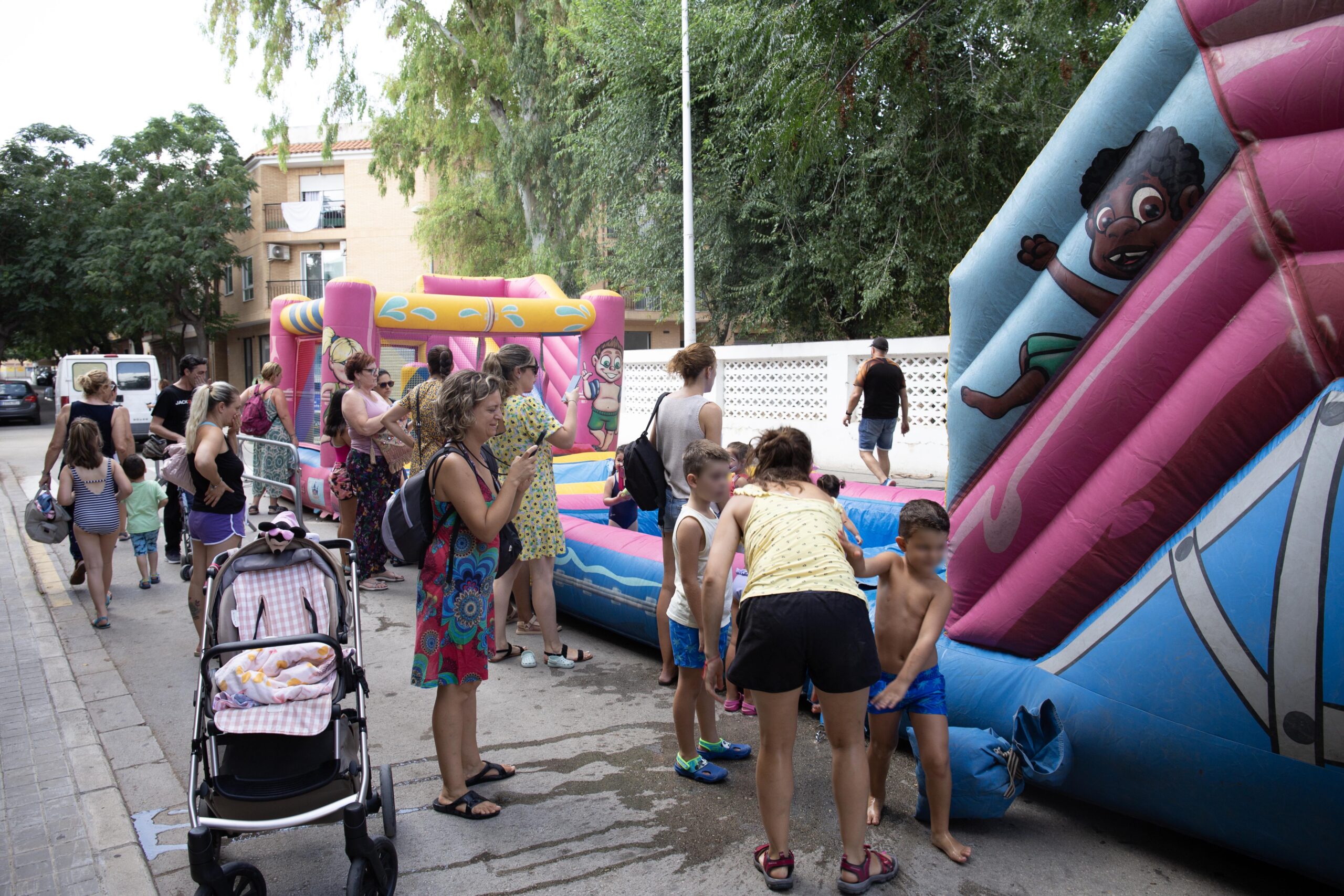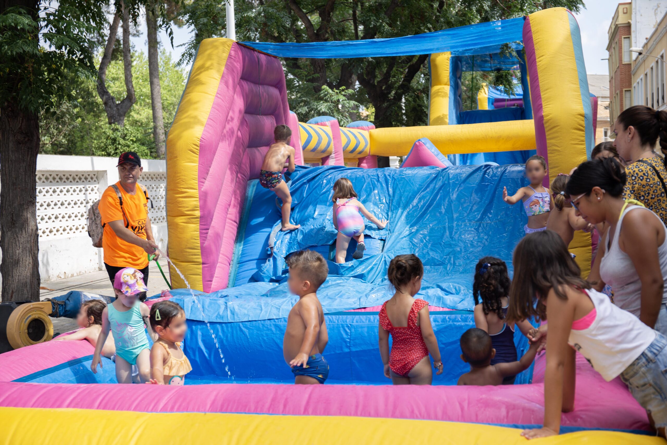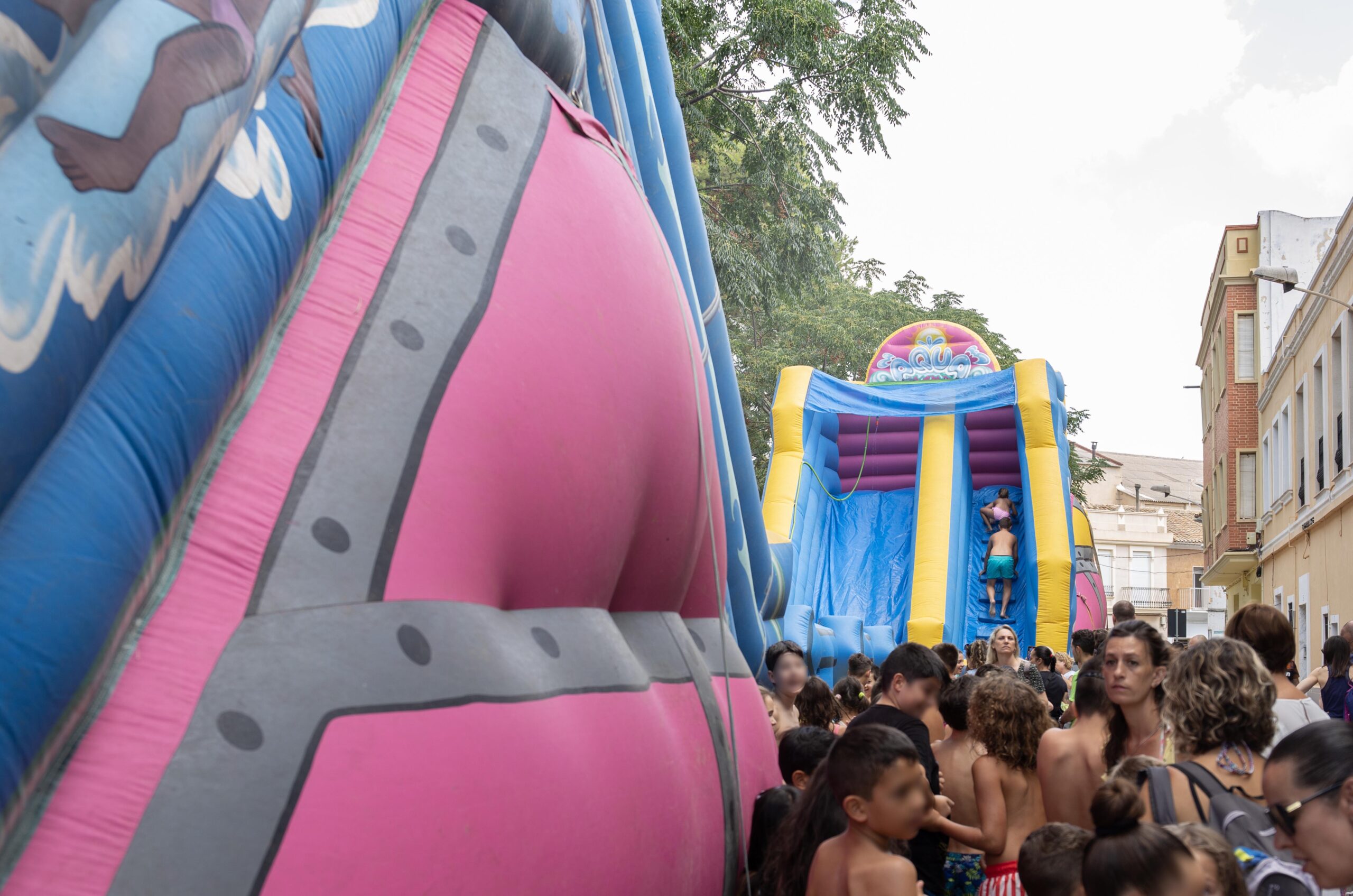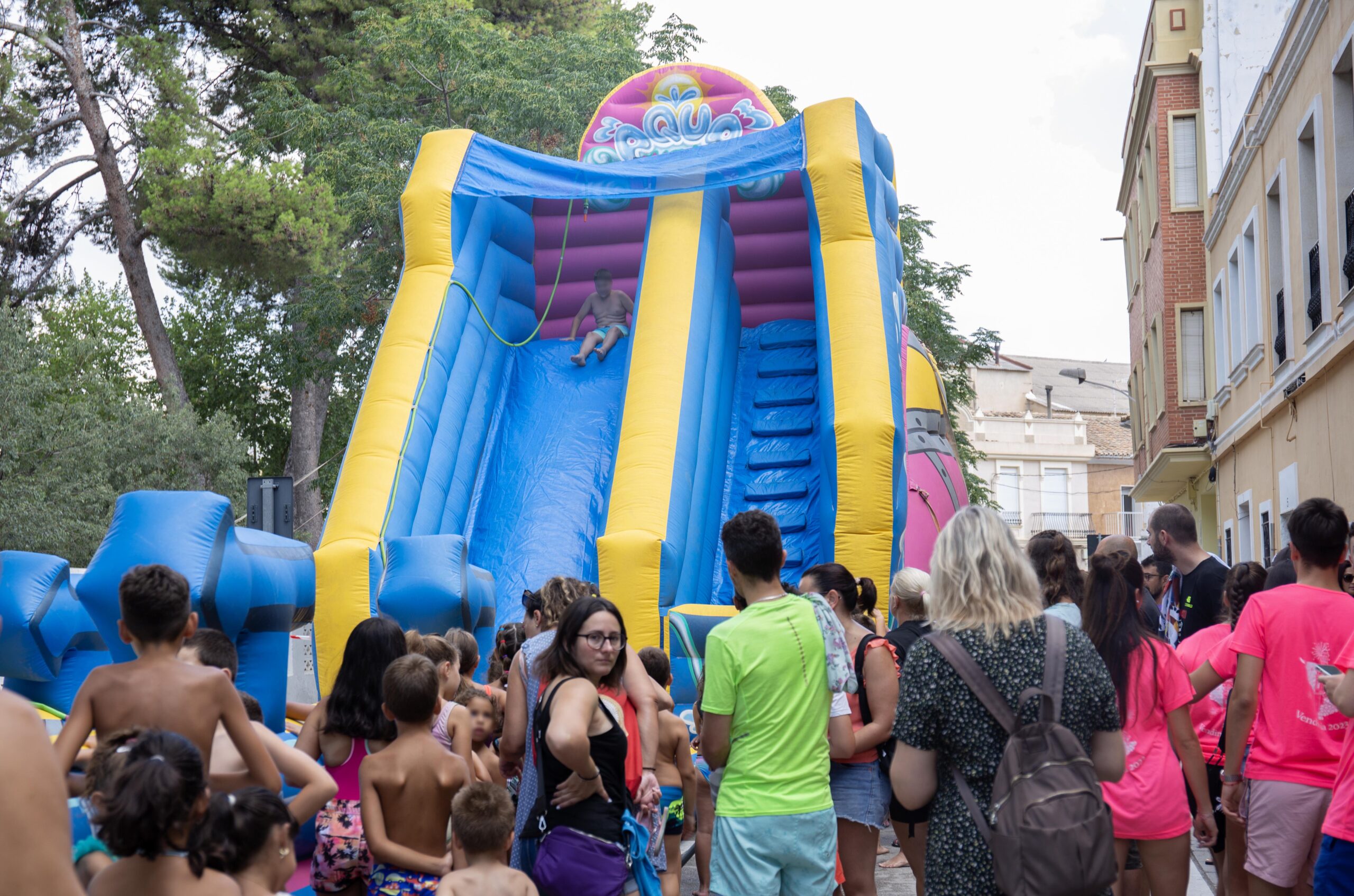 El sábado por la mañana se instaló un parque acuático hinchable en la Calle Vicente Navarro, con toboganes, deslizadores y piscinas que contó con gran participación infantil.