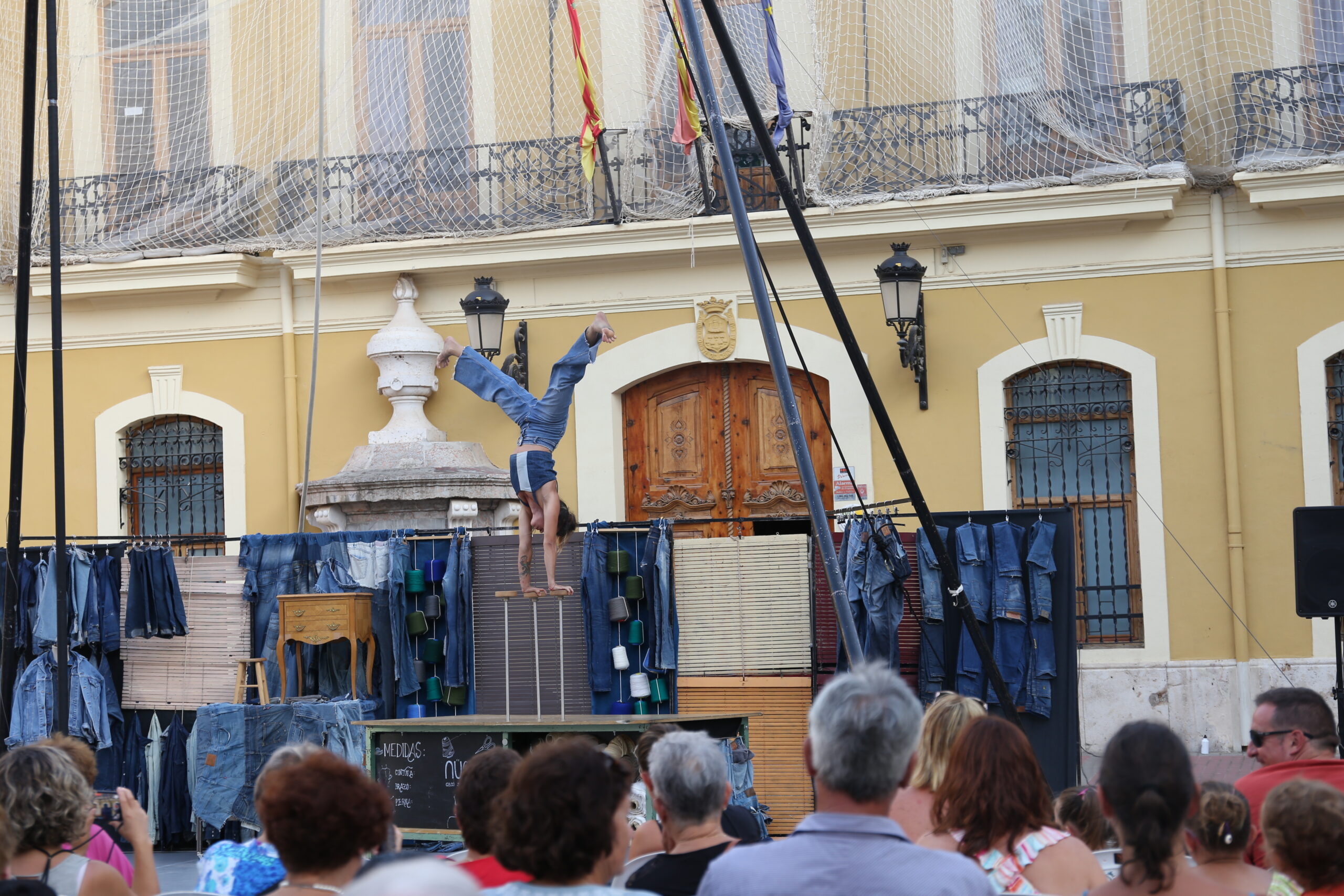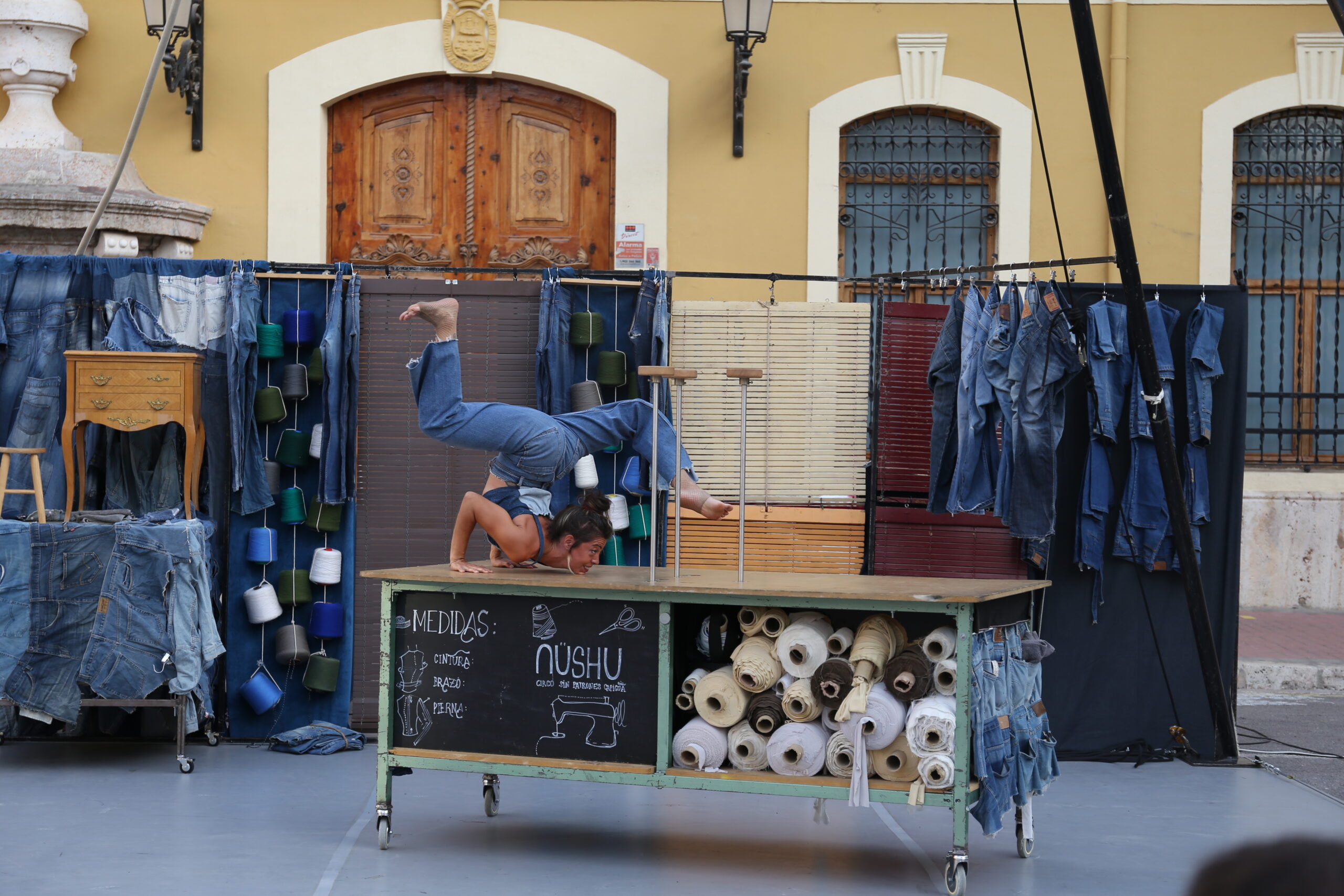 El domingo terminaba la programación del fin de semana a las 20:00 con el espectáculo teatral Nüshu, a cargo de la compañía Capicúa, ambientado en una fábrica textil y con cinco mujeres como protagonistas que llevaron a escena acrobacias de cuerda doble, escalera área y mástil, entre otros.