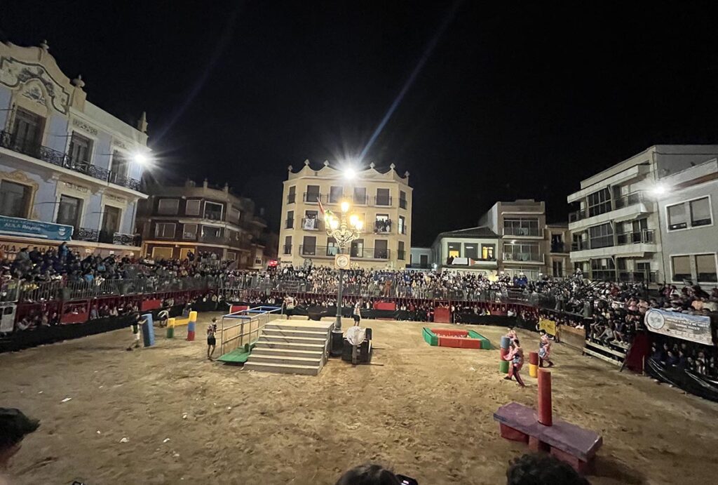 El pasado viernes, 24 de octubre, el Día de las Peñas se abrió a medio día, con una entrá especial de toros en la calle Chiva, con 24 reses, y una charanga previa que animaba el ambiente antes de dar comienzo. La tarde de toros se vio en esta ocasión protagonizada por el desfile de peñas, que se celebró en el descanso, donde las cuadrillas de amigos y amigas lucieron sus mejores vestimentas y, ya entrada la noche, se celebró el Gran Prix “Bou per Vila”, en la plaza de toros, y también se hizo entrega de un jamón a las peñas mejores ataviadas, ganadoras del concurso, El Rebanyo y OPS.
