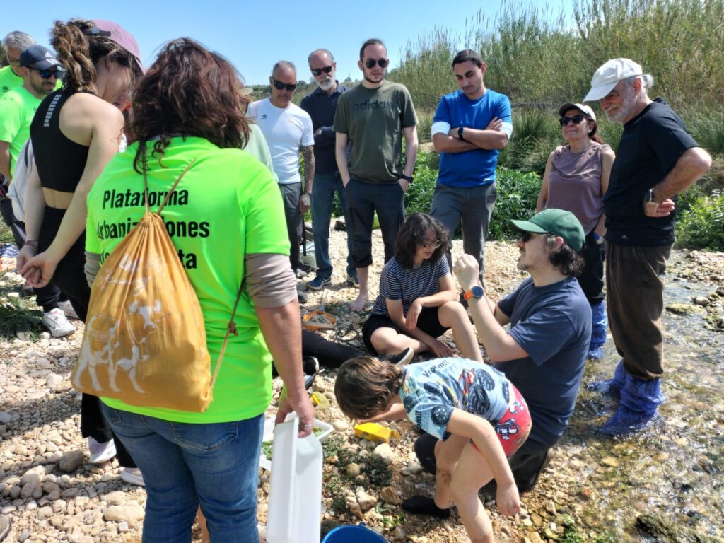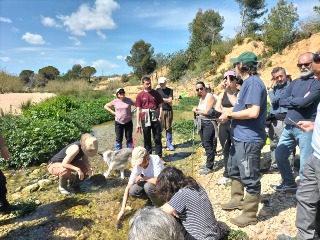 La primera parte práctica consistió en evaluar el estado ecológico del curso fluvial mediante el análisis fisicoquímico y la aplicación del índice IBMWP (Iberian Biological Monitoring Working Party), sobre macroinvertebrados acuáticos. Esta actividad fue dirigida por el Dr. Eduardo Moisés García, vicedecano y profesor del Departamento de Microbiología y Ecología de la Universidad de Valencia, experto en ecología de hábitats temporales mediterráneos y pequeños cursos de agua intermitentes e investigador del Instituto Cavanilles de Biodiversidad y Biología Evolutiva (ICBIBE) en el campo de la ecología de poblaciones acuáticas, especialmente en hábitats temporales como lagunas y pozas, de la región mediterránea, además de ser autor de más de 50 artículos científicos en revistas internacionales de alto impacto, como Limnology and Oceanography, Scientific Reports, Freshwater Biology, Oikos, o Proceedings of the Royal Society.