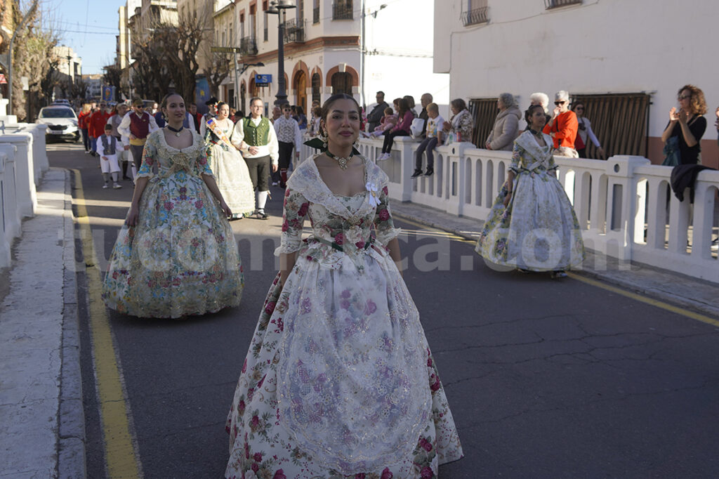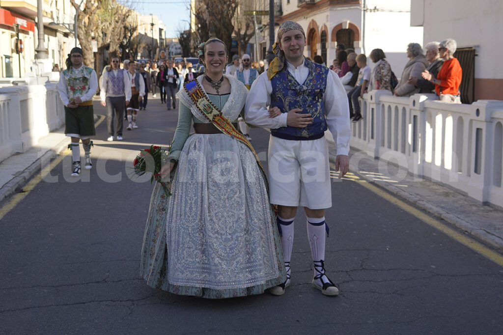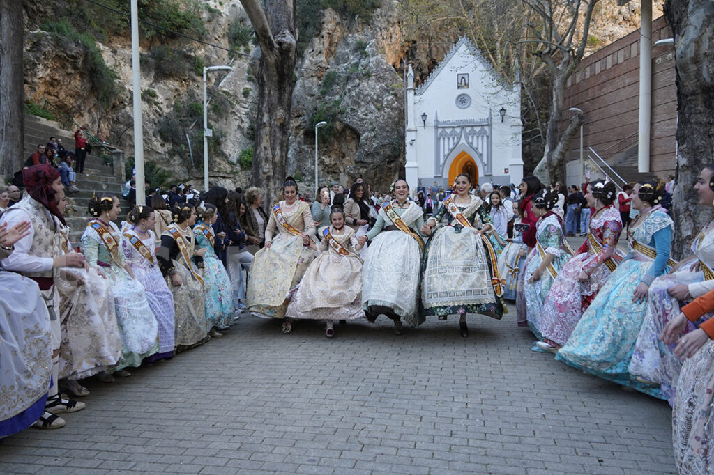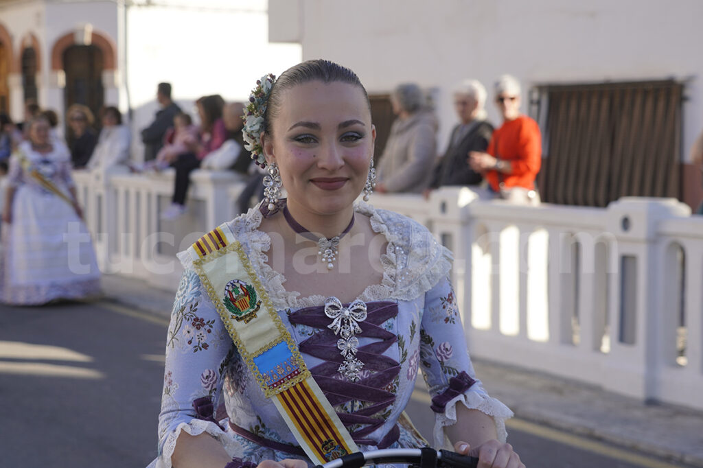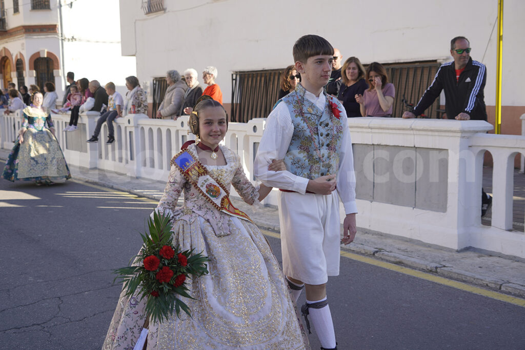 El recorrido, que comenzó en la Avenida de La Violeta, estuvo marcado por la alegría de los asistentes, quienes ataviados con sus trajes tradicionales y portando estandartes recorrieron las calles hasta llegar a la ermita de San Luis. La romería finalizó con la emotiva ofrenda por parte de las falleras mayores.