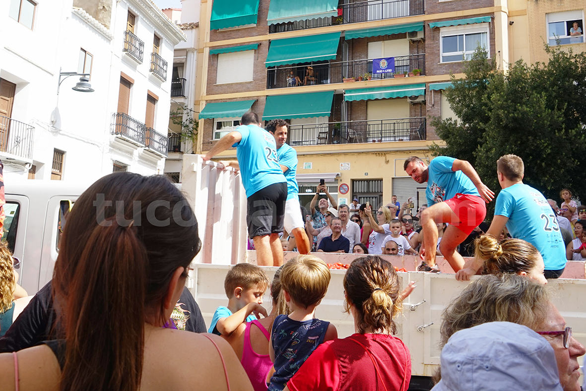 Un año más, los más pequeños han podido emular a sus mayores lanzándose tomates en el tradicional y popular festejo organizado por el Ayuntamiento de la localidad y que ha tenido lugar este sábado, 26 de agosto de 2023, en la plaza del Pueblo de la localidad.