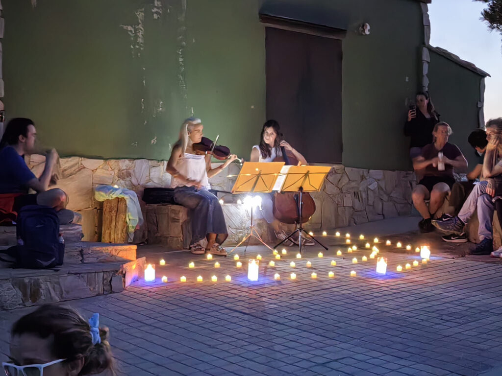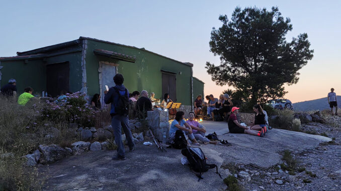 La caminata partió desde el Albergue de La Cárcama a las 20:00 y el recorrido discurrió por la Cuesta del Yésar, el barranco del Cuchillo y el alto de Las Garroferas de Mañan hasta el refugio. Allí el grupo pudo disfrutar de la cena con el acompañamiento del dúo Alma, que ofreció un variado repertorio musical con piezas clásicas, pop y tangos.