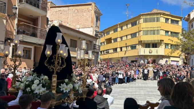 Siete Aguas ha vivido con devoción y emoción la procesión del Santo Encuentro, uno de los actos más significativos de su Semana Santa, celebrado como es tradición en la mañana de Pascua. La Plaza de la Iglesia se ha llenado de vecinas y vecinos que no han querido perderse este solemne momento en el que se representa el encuentro entre Cristo Resucitado y la Virgen.