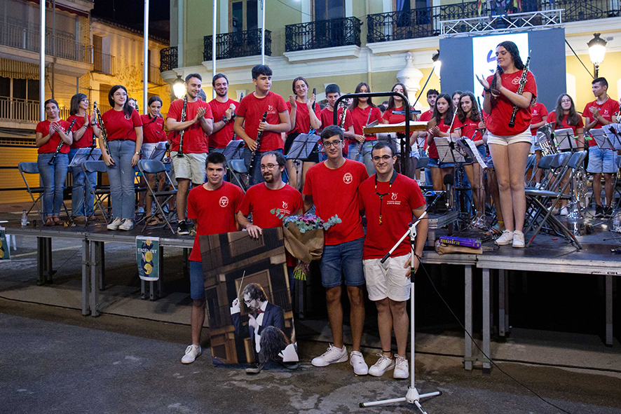 Llorente puso en valor la personalidad de López e hizo un recorrido por su trayectoria musical. Según explicó la concejala, López estudió fagot, fundamentos de composición e iniciación a la dirección en el Conservatorio de Buñol y, más adelante, cursó estudios superiores de composición en el Conservatorio superior de música del Principado de Asturias. En la actualidad, además de estar dirigiendo la Banda Juvenil de la AM La Lira, es director titular del coro de la Iglesia San Lucas Evangelista. “Con el concierto de esta noche ha quedado clara tu sensibilidad, creatividad y capacidad para llevar a la Banda Juvenil a un nivel muy alto. Gracias por tu colaboración con el Ayuntamiento siempre, proponiendo proyectos interesantes con sencillez y humildad. Además, hace unas semanas se estrenó tu última composición musical: la obra Sapere Aude, un encargo del director de la Banda Sinfónica, Javier Enguídanos, para el Certamen Internacional de Bandas Villa de Altea, en el que la Asociación Musical La Lira ha sido seleccionada. Gracias Gustavo, te aventuramos un gran futuro en la música y en tu vida; eres especial y excepcional; y seguiremos contando contigo, sin interrupción y siempre”, se despedía la concejala.