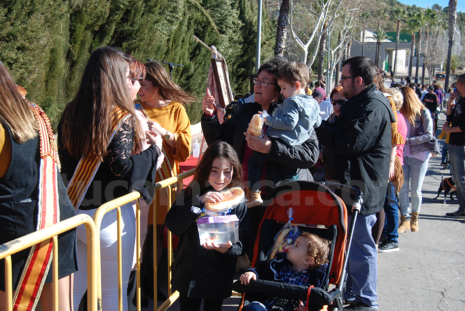 La alcaldesa de Buñol, Juncal Carrascosa, acompañada por la Reina de las Fiestas 2017-2018, Sara Palmer, y por parte de su Corte de Honor, repartieron los tradicionales Pan Samblás, chuches y detalle del Ayuntamiento a todos los participantes. Mascotas de todo tipo junto a caballistas y carros de la localidad y del resto de la comarca se dieron cita en una soleada mañana.