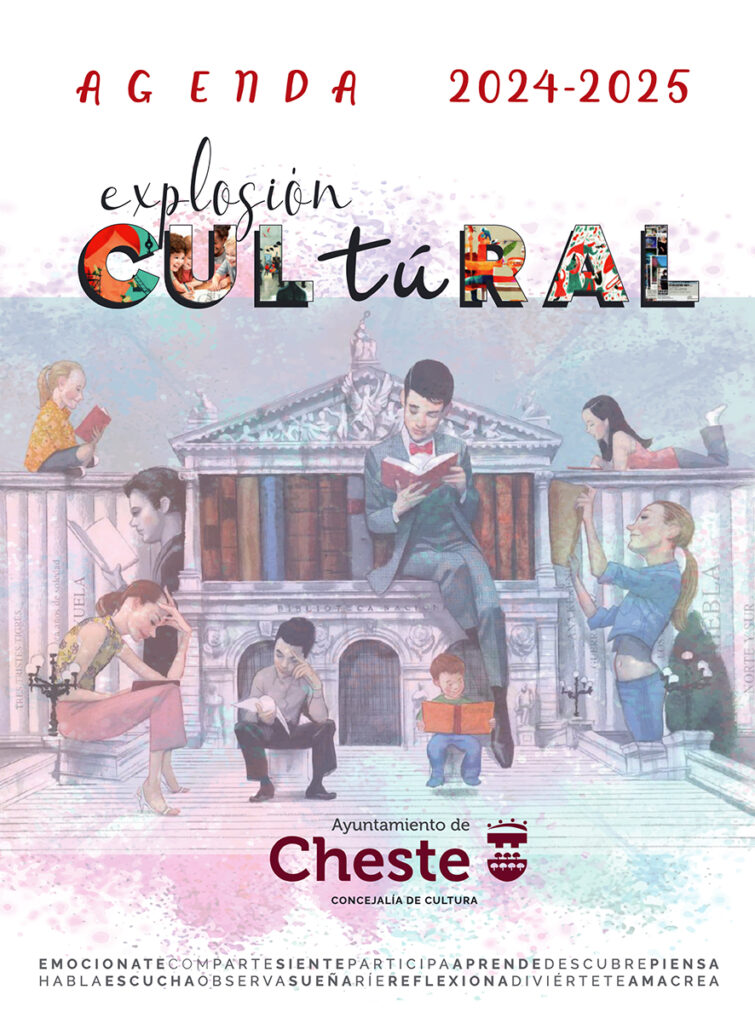 Bajo el lema “Explosión cultural», la programación contempla, un año más, las actividades y ciclos que se han desarrollado con éxito en otras temporadas, como la Muestra de teatro no profesional, El Festival de Arte Urbano Graffitea Cheste, el cine de actualidad, la Feria del libro, Música en Primavera, las Serenatas, el cinefórum y el club de lectura; además de nuevas actividades y espectáculos, programados puntualmente, e iniciativas novedosas, como el proyecto de divulgación musical “Shhcúchame”, con el que se pretende ofrecer formación musical a través de un método pedagógico activo, dinámico y creativo, de la mano del profesor y director musical, Bernardo Mora-Fandos.
