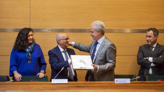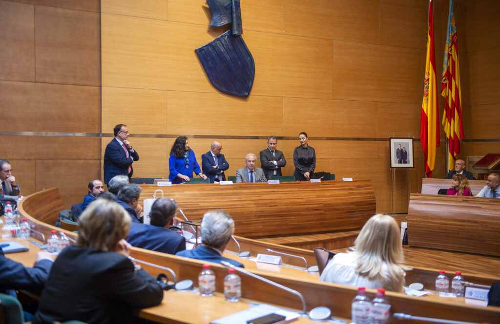 El Salón de Plenos de la Diputació de València ha acogido este viernes la sesión Plenaria del Consejo General de Graduados Sociales de España, que se ha celebrado en la ciudad de Valencia como un gesto para apoyar a las poblaciones afectadas por la dana. El diputado provincial Ricardo Gabaldón, que precisamente fue presidente tanto del Colegio de Graduados Sociales de Valencia como del Consejo General, ha acudido a la sesión. En ella ha afirmado que “es un placer acoger este pleno en la Diputació de València. Tengo un sentimiento especial por la cercanía que me une a la institución y a todos los profesionales que integran la entidad, como expresidente del Colegio”.
