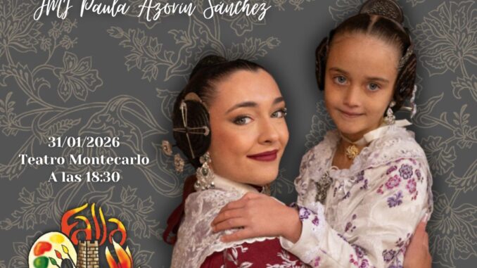 En este emotivo acto, la comisión proclamará oficialmente a sus máximas representantes para el nuevo ejercicio fallero: Ana Garrigues Ginés, como Fallera Mayor, y Paula Azorín Sánchez, como Fallera Mayor Infantil, quienes serán las grandes protagonistas de una tarde cargada de emoción, simbolismo y tradición.