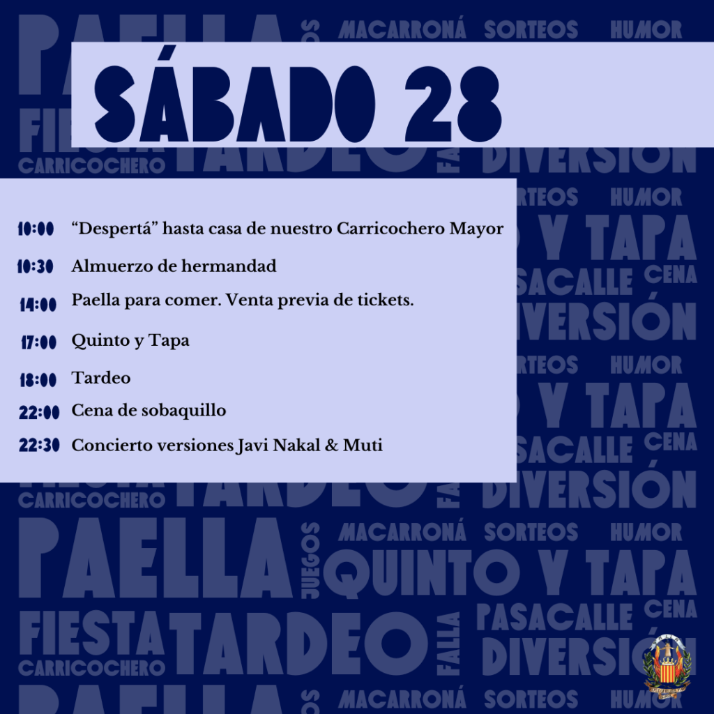 El sábado, como es tradición, se celebrará el popular «Quinto y Tapa», seguido de la esperada comida de paellas. Por la tarde, los asistentes podrán disfrutar del tardeo, y la jornada culminará con un gran concierto de versiones a cargo de Nakal & Muti. El domingo estará dedicado a las familias, con juegos infantiles, una globotá, más «Quinto y Tapa», y una deliciosa macarroná para cerrar el fin de semana.