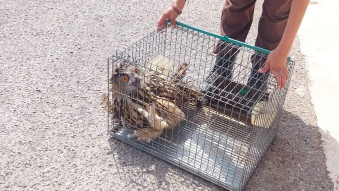 Agentes de la Guardería rural de Chiva han rescatado, con la colaboración de la Guardia Civil de Valencia, a un búho real desorientado y herido en el citado municipio de Chiva atendiendo la llamada de alerta de un vecino de la localidad.