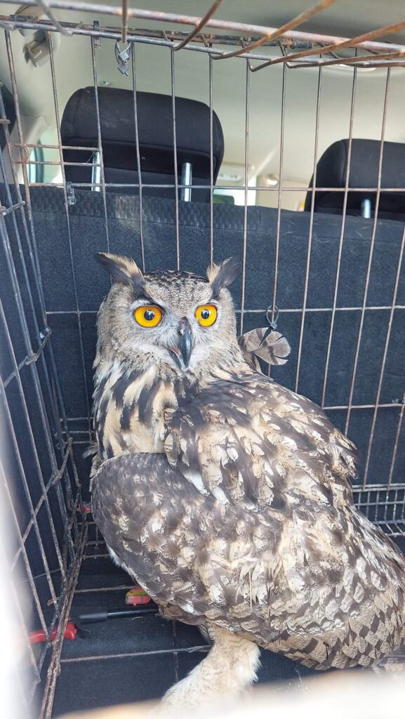 Sobre el mediodía del pasado 26 de agosto se localizó en el municipio de Chiva un búho real que parecía desorientado. Alertado el Servicio de Guardería Rural de Chiva y en colaboración con la Guardia Civil se personaron en la partida «Fuente la Incolla» del término municipal de Chiva, donde pudieron comprobar que el ejemplar tenía varias heridas en una de las alas.